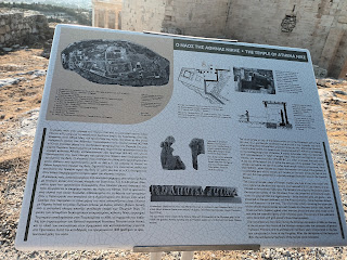 Mivel előre megvettük a jegyet este hatra, úgy volt, hogy nem kell beállni a sorba, de kiderült, hogy Timi ingyenjegyéért mégis be kell. De nem tartott sokáig, így végül néhány perccel 6 után már be is jutottunk. Szerencsére nem volt már nagy a meleg, így kellemes sétát tettünk a hegyen, megnéztük a különböző épületek romjait, Dionüszosz színházát és persze a legfontosabb épületet, a Parthenónt.